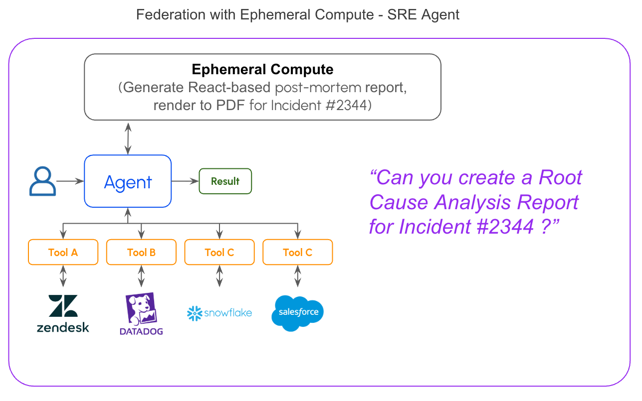 Simple federation handles most queries. But some tasks need more: complex aggregations, data transformations, joins across large result sets, or generating artifacts from fetched data.