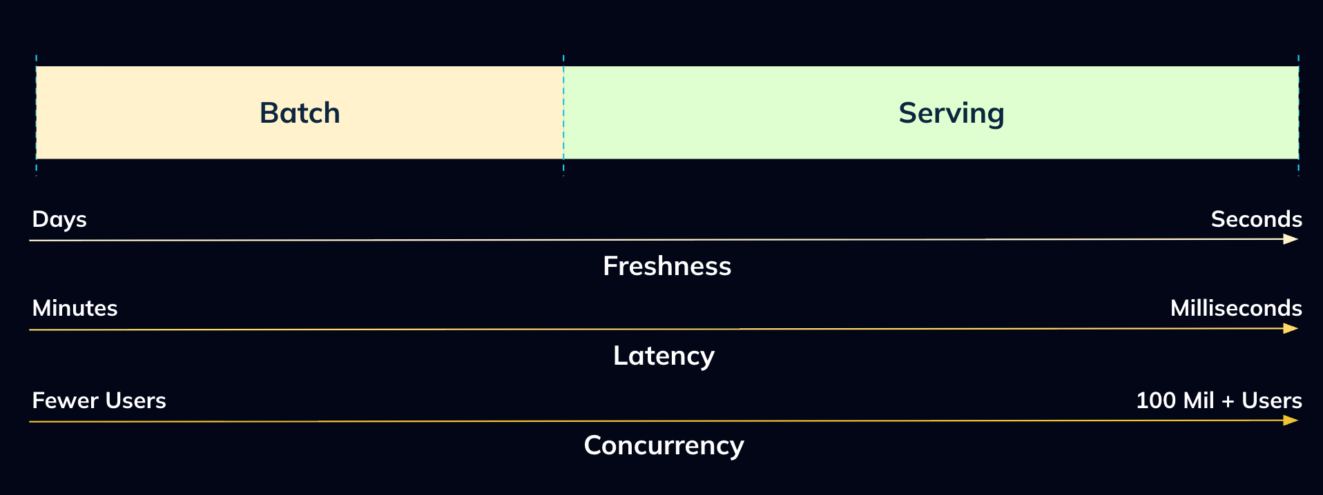 And this brings us to the next natural question, wouldn’t serving systems also benefit from adopting this? The answer is of course, yes, however, the problem is intrinsically much harder in systems purpose built for serving.**Data warehouses** are inherently designed as powerful scan engines,**optimized for workloads that are scan-heavy in nature**. While the data processed per query is large, the concurrency is relatively low, and latency expectations are relaxed (tens of concurrent users, seconds latency).**Serving use cases**, on the other hand, operate under a completely different set of constraints. Interactive and end-user facing experiences such as personalized recommendations on a meal delivery app or live transaction metrics on a merchant dashboard require lightning-fast responses for all active users on the platforms. Take Apache Pinot as an example: workloads of tens of thousands of queries per second, ingesting millions of events per second, and serving results at millisecond latency are the norm.
