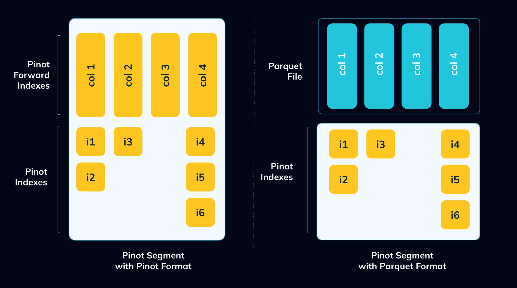 With Parquet support integrated into the Pinot forward index abstraction, we unlocked the key to what makes Pinot fast: its**indexes**. In Pinot, indexes depend only on the forward index interface, not on the Pinot file format. As a result,**all of Pinot’s existing indexes work seamlessly on top of the new Parquet forward index implementation**, an achievement made possible only by a design built on strong interfaces and pluggability.