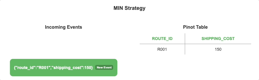 TheMIN strategy keeps the smaller value between the existing value and the incoming value. This is useful for identifying the lowest values.Example Industry Use Case: Supply Chain (Tracking Minimum Shipping Cost for a Route)